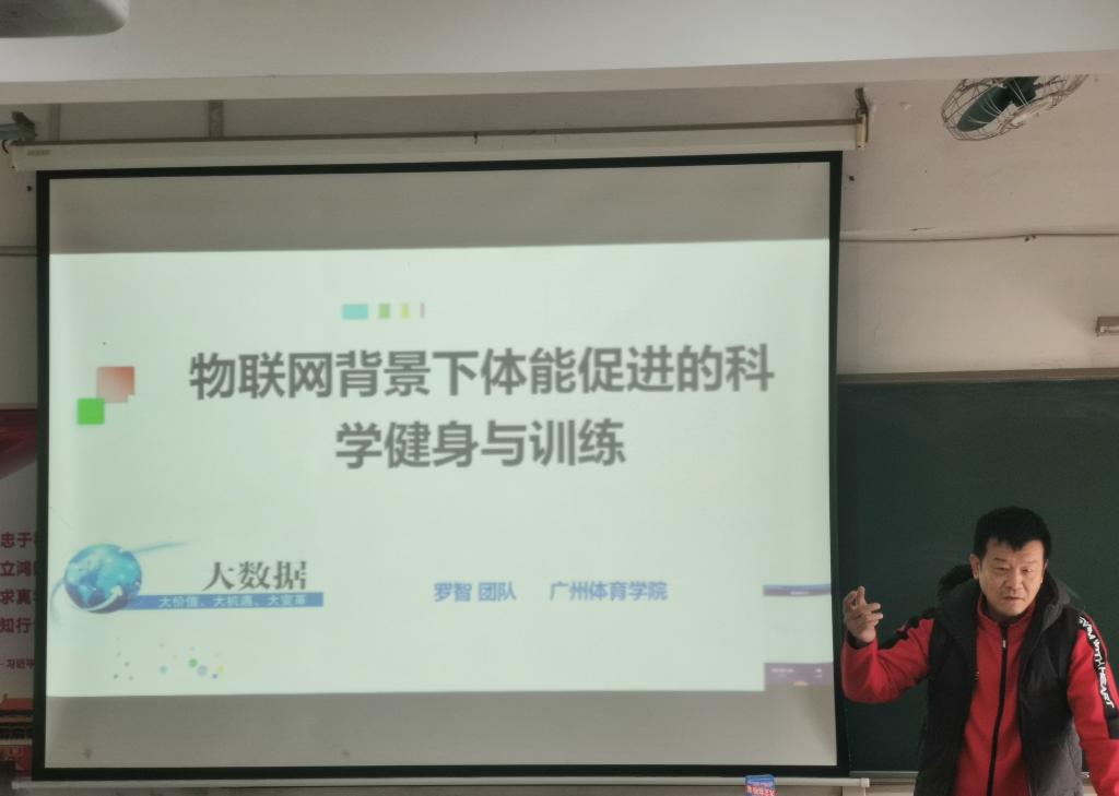 (公共体育教学部供稿)12月17日下午三点,公共体育教学部邀请广州云顶国际罗智教授在教学楼302室向全体教职工作了《青少年运动训练监控及体质发展》基于体能促进的物联网健身与训练模式的学术讲座。讲座由贺泽江副主任主持。