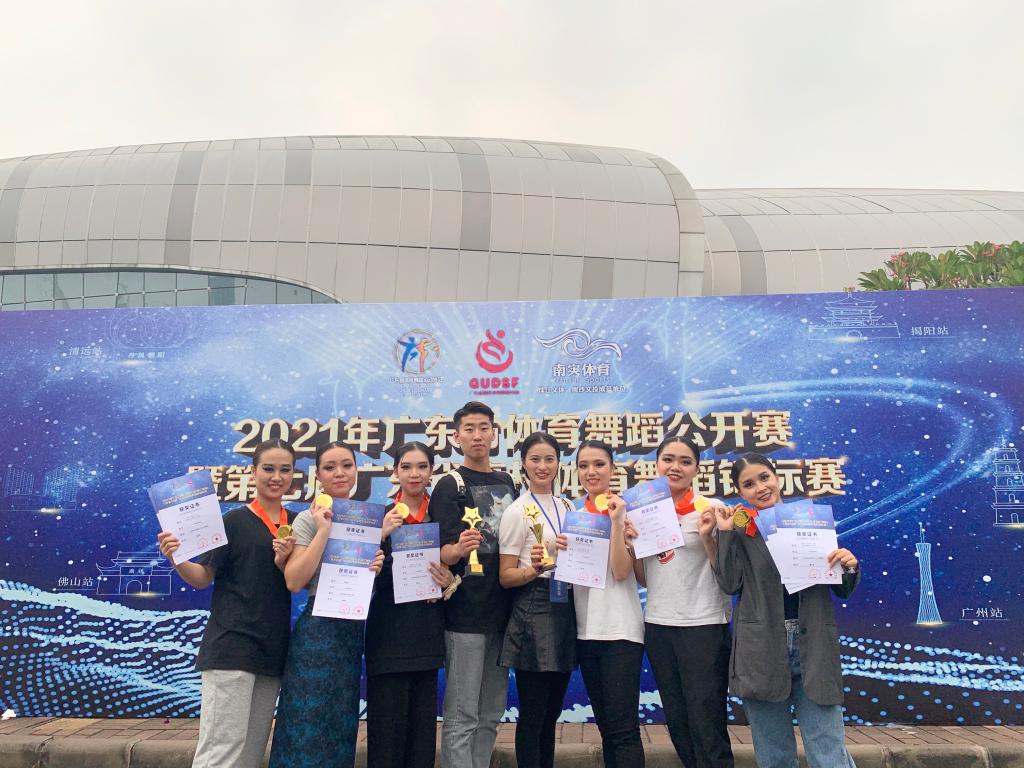 (公共体育教学部供稿)10月30日至31日,2021年广东省体育舞蹈公开赛暨第七届广东省高校体育舞蹈锦标赛,在广州南沙体育馆举行,公司体育舞蹈队在公共体育教学部教练兼领队胡婧老师的带领下,不畏对手,经过小组淘汰赛、半决赛、决赛的激烈角逐,在众多竞争对手中脱颖而出,获得了拉丁舞比赛2个第一名、1个第二名、1个第四名、2个第五名和1个第八名的良好成绩。
