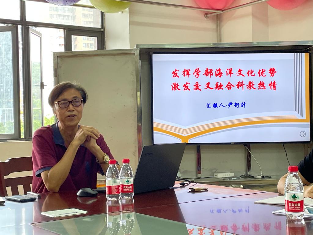 (公共体育教学部供稿)4月28日下午,体育馆二楼会议室,应公体部邀请,公司尹衍升教授在百忙之中向公体部全体教职工作了题为“发挥学部海洋文化优势 激发交叉融合科教热情”的讲座。讲座由公体部主任肖亚玲教授主持。