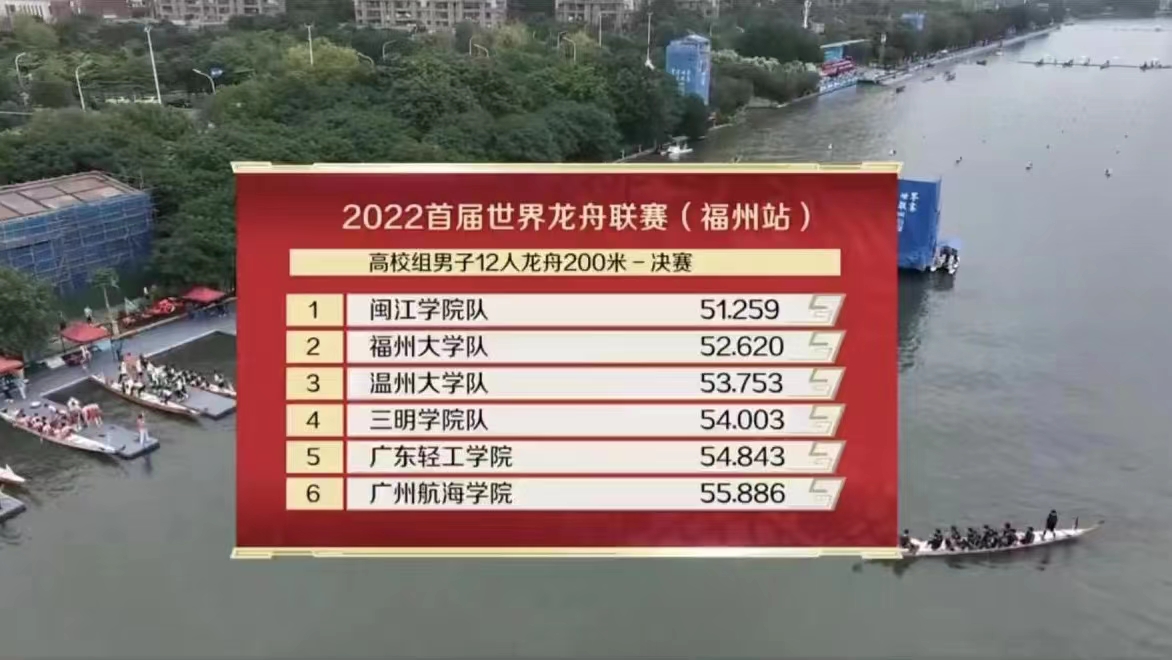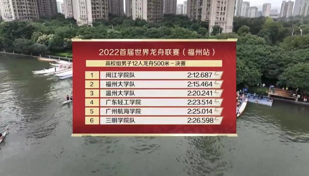 (公共体育教学部供稿)6月3日上午,由国际皮划艇联合会指导,福建省体育局、福州市人民政府、中国皮划艇协会主办的2022年首届世界龙舟联赛(福州站)的决赛在仓山区浦下河开幕。本站比赛设置专业组、奥运龙组、公开组、高校组,吸引了俄罗斯、巴基斯坦、哈萨克斯坦等国际友人队伍,国家训练营龙舟队、福建省男女龙舟队以及国内高校龙舟队,共48支队伍参赛。公司派出了由领队张立新老师、教练麦健民老师和14名队员组成的云顶国际电白建设集团龙舟队参赛,比赛项目为200米、500米直道竞速,6月1日至2日进行了预赛。