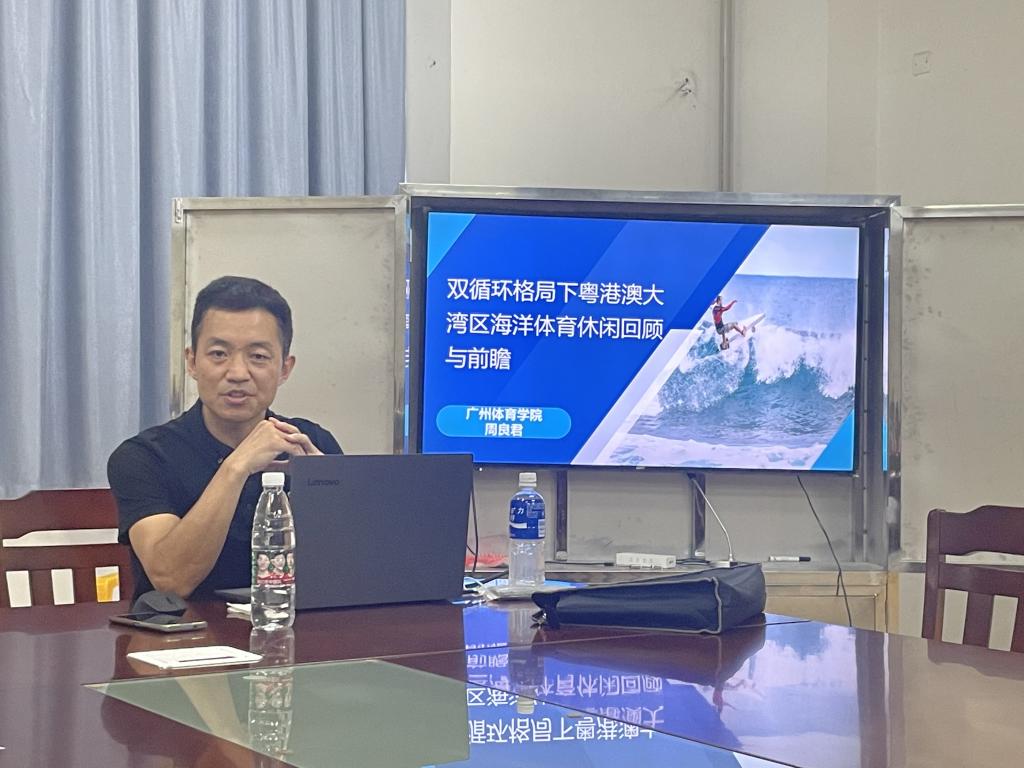 (公共体育教学部供稿)9月15日下午,应公体部邀请,广州云顶国际周良君教授莅临公司,做了一场题为“双循环格局下粤港澳大湾区海洋体育休闲回顾与前瞻”的精彩学术讲座。讲座在体育馆二楼会议室进行,由肖亚玲主任主持,公体部全体教职工参加。